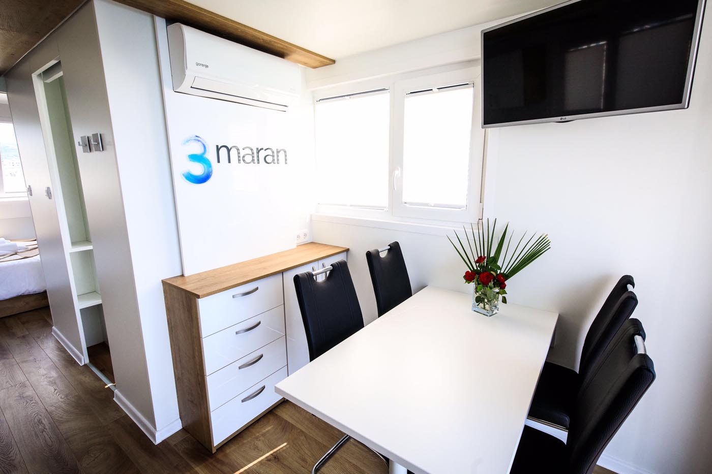 Das Wohnzimmer ist mit einem Sofa ausgestattet, das zu einem Bett für 2 Personen (140 x 200 cm).