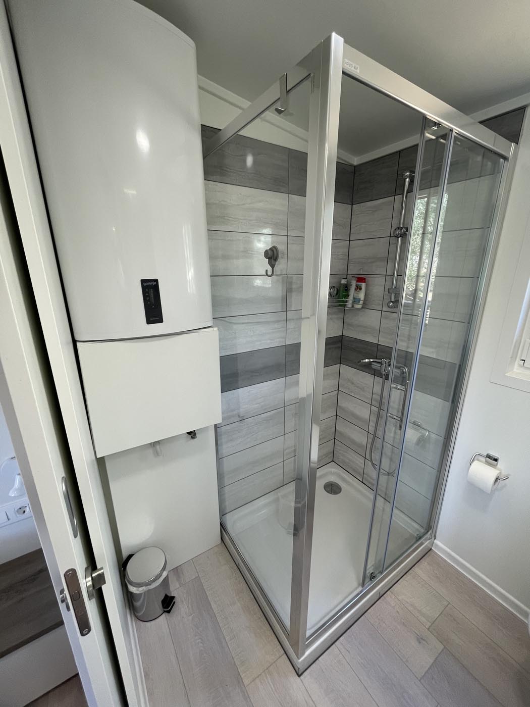 Kupaonica 2 ima veliku tuš kabinu (80 x 100 cm), ormariće s ogledalom, grijač vode, umivaonik s armaturom od nehrđajućeg čelika i toaletnu školjku.