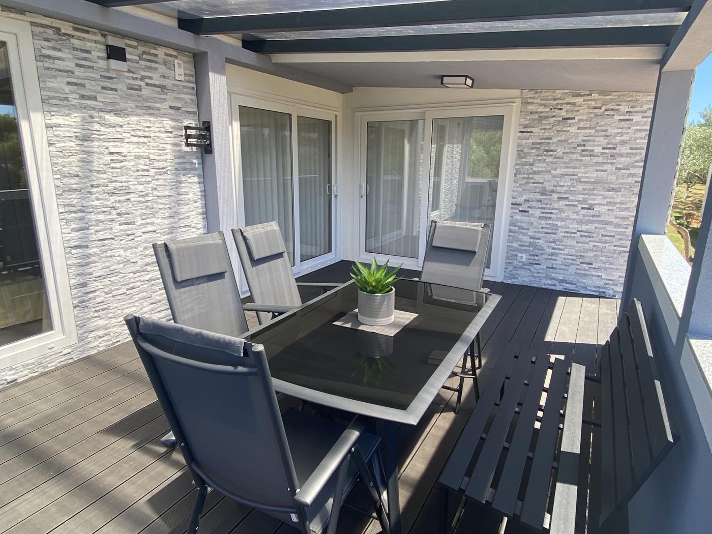 Blagovaonica ima moderan stol i 6 tapeciranih stolica.