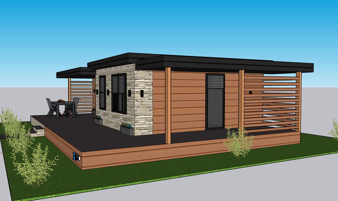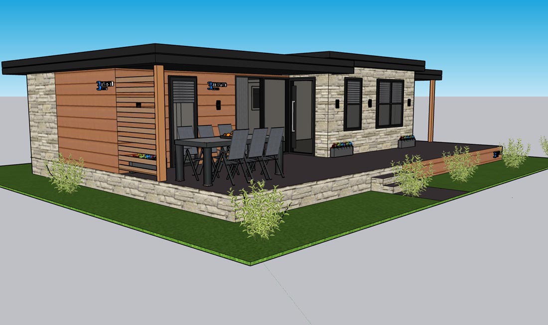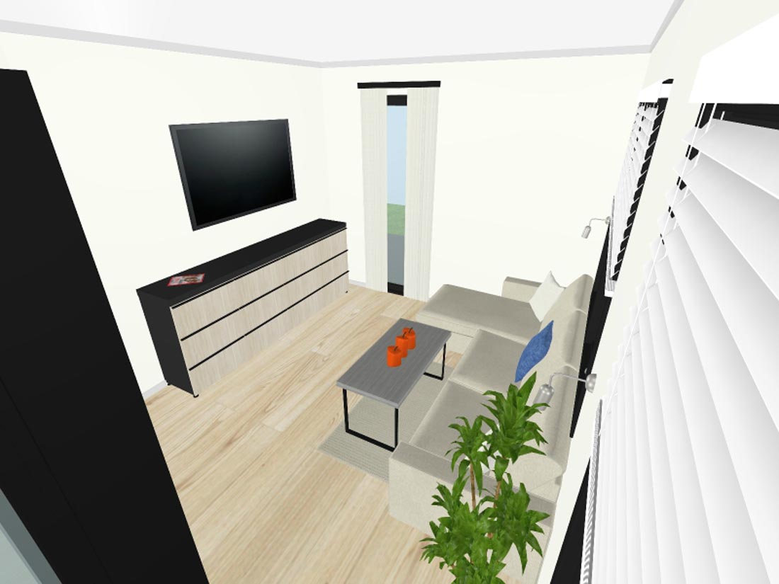 Dnevna soba opremljena je sjedećom garniturom, koju možete rastegnuti u ležaj za 2 osobe (140 x 200 cm), stolićem i velikim garderobnim ormarom.
