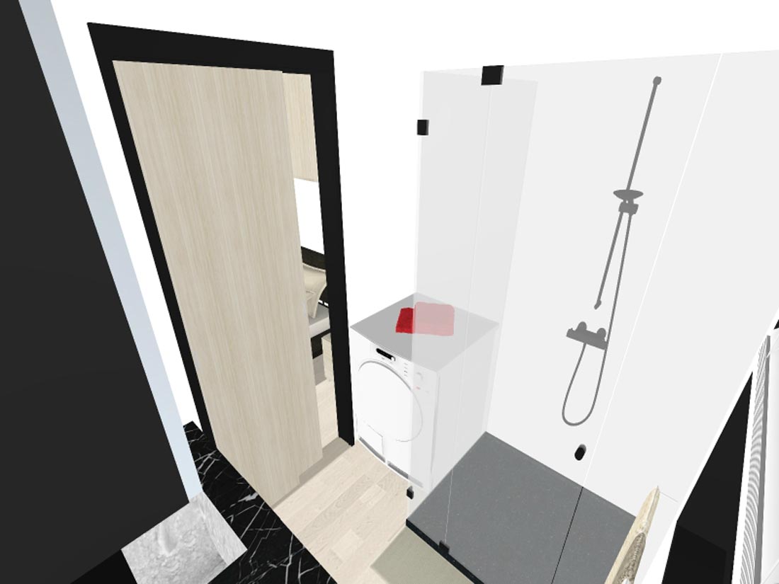 Kupaonica 2 ima veliku tuš kabinu (80 x 100 cm), ormariće s ogledalom, grijač vode, umivaonik s armaturom od nehrđajućeg čelika i toaletnu školjku.