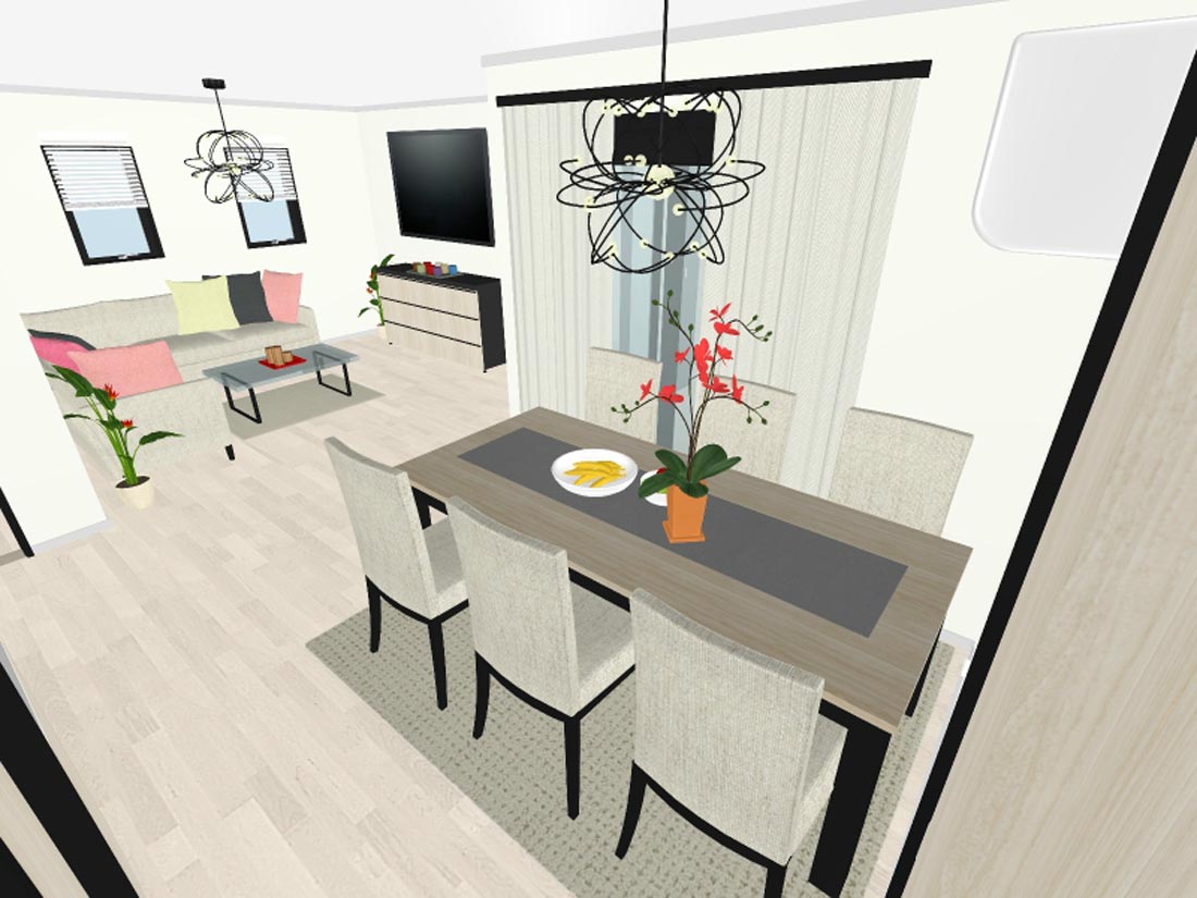 Blagovaonica ima moderan stol i 6 tapeciranih stolica.