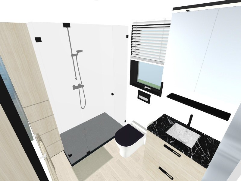 Kupaonica 1 ima tuš kabinu (80 x 80 cm), ormariće s ogledalom, grijač vode, umivaonik s armaturom od nehrđajućeg čelika i toaletnu školjku.