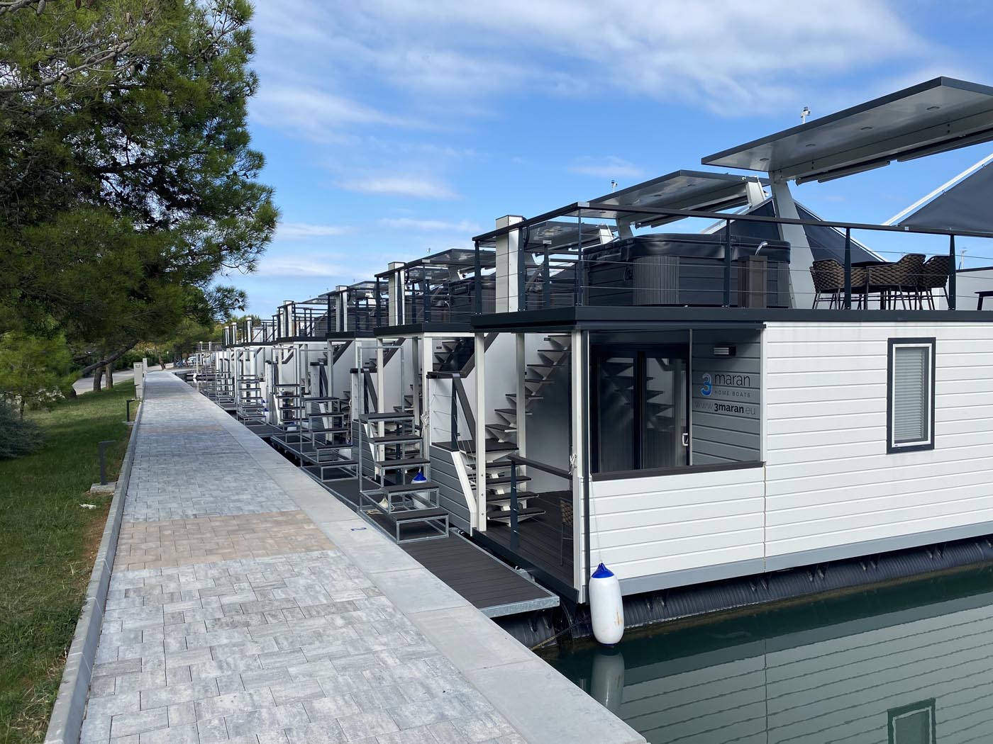 Stručnjaci tvrtke 3maran redovito pripremaju posebna projektna rješenja i proizvode za izvedbu sigurnih vezova (stabilizacija i zaštita plutajućih kućica) i pristupa plutajućim kućicama (plutajući pontoni, stepenice, terase i mostovi), koji se mijenjaju i prilagođavaju s obzirom na veličinu i lokaciju postojećih marina.