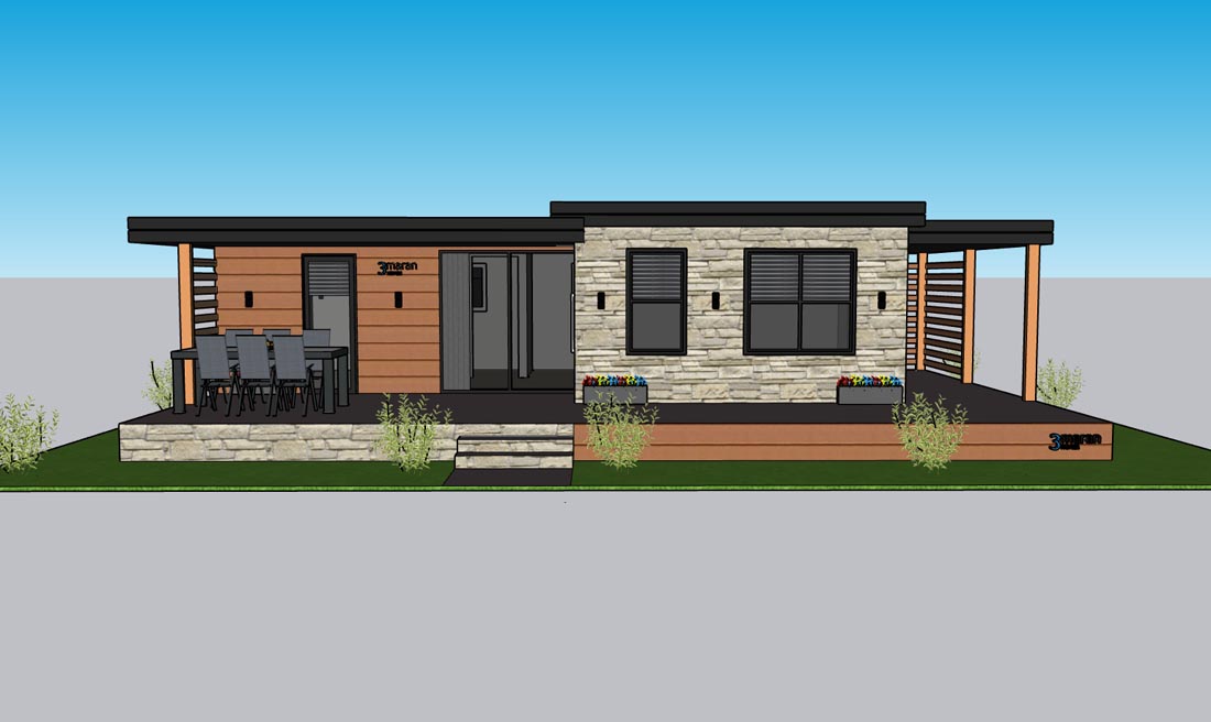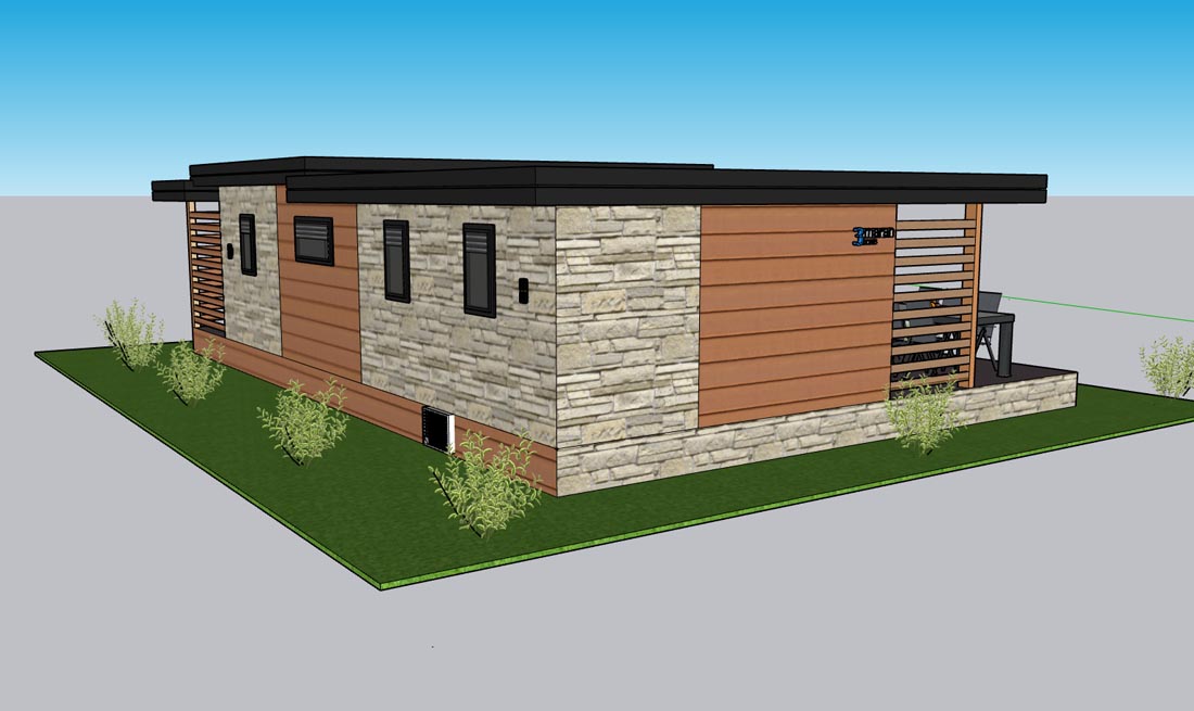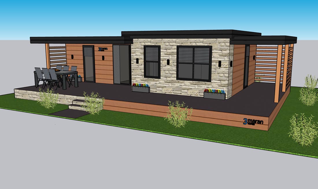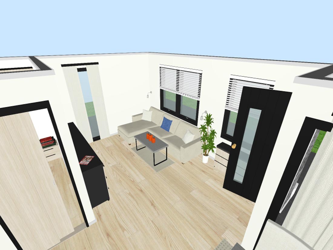Dnevna soba je opremljena s sedežno garnituro, ki jo lahko raztegnete v ležišče za 2 osebi (140 x 200 cm), mizico in nizko omaro.